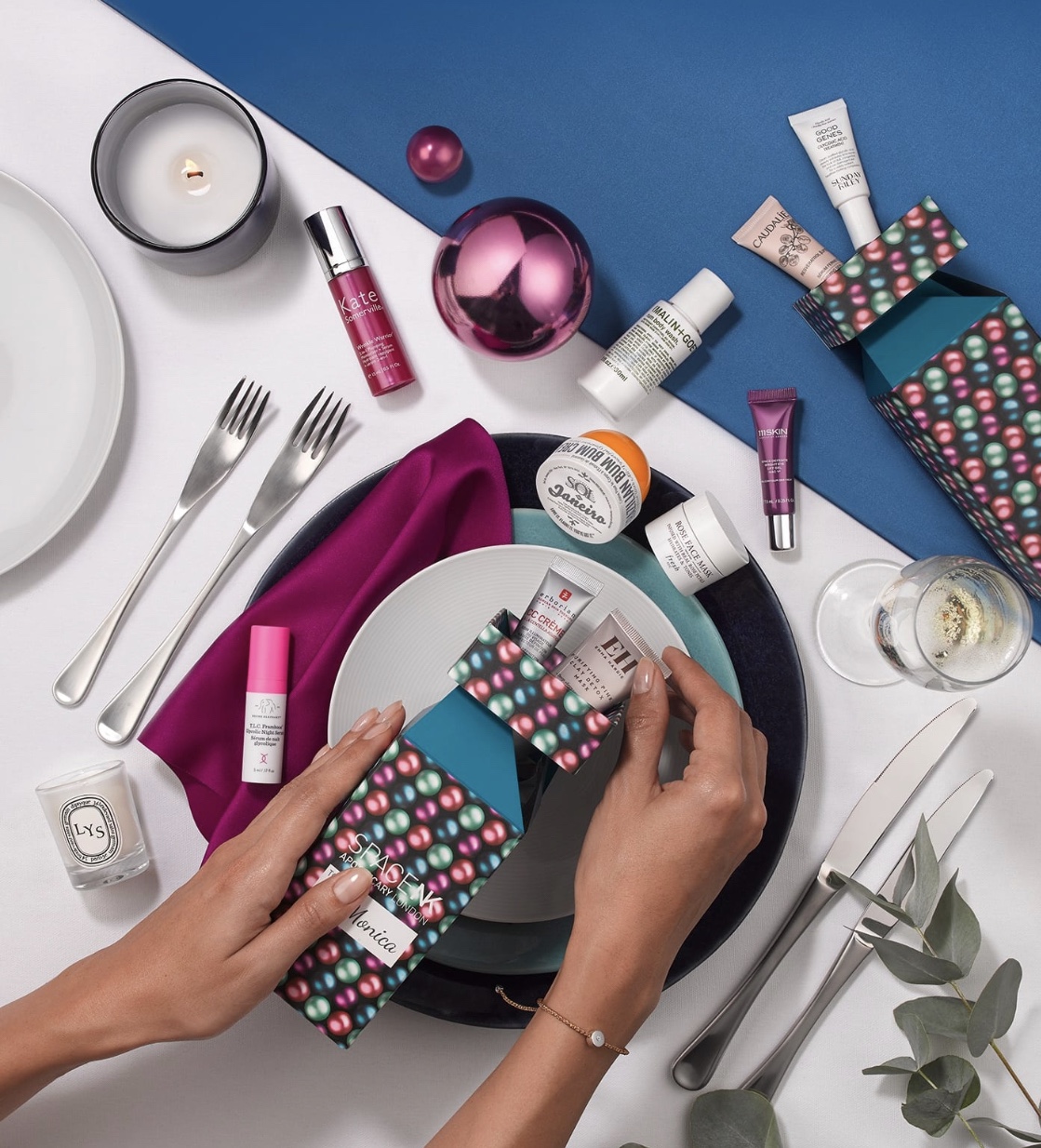 The Party Favours Gift comes with 26 luxury beauty products, an exclusive Monica Vinader bracelet and a SpaceNK gift card worth £25.